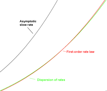 Figure 7: Extrapolation of slow kinetics vs fat-tail kinetics